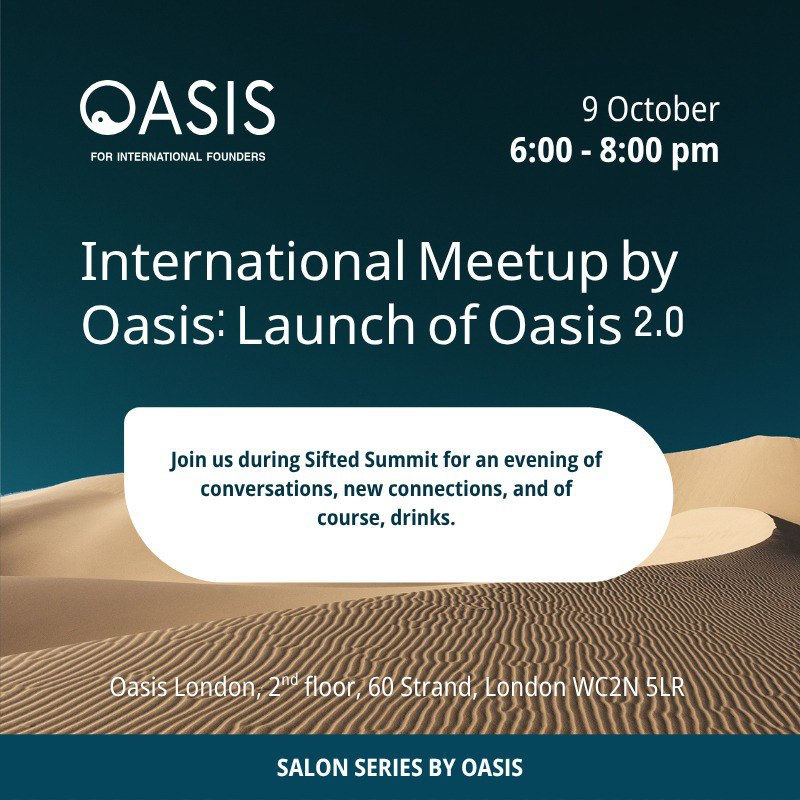 Oasis is a global community in the heart of London, built for international founders to connect, collaborate, and grow. Designed as a hub for ambitious entrepreneurs, Oasis provides access to investor networks, exclusive events, and the resources needed to scale.